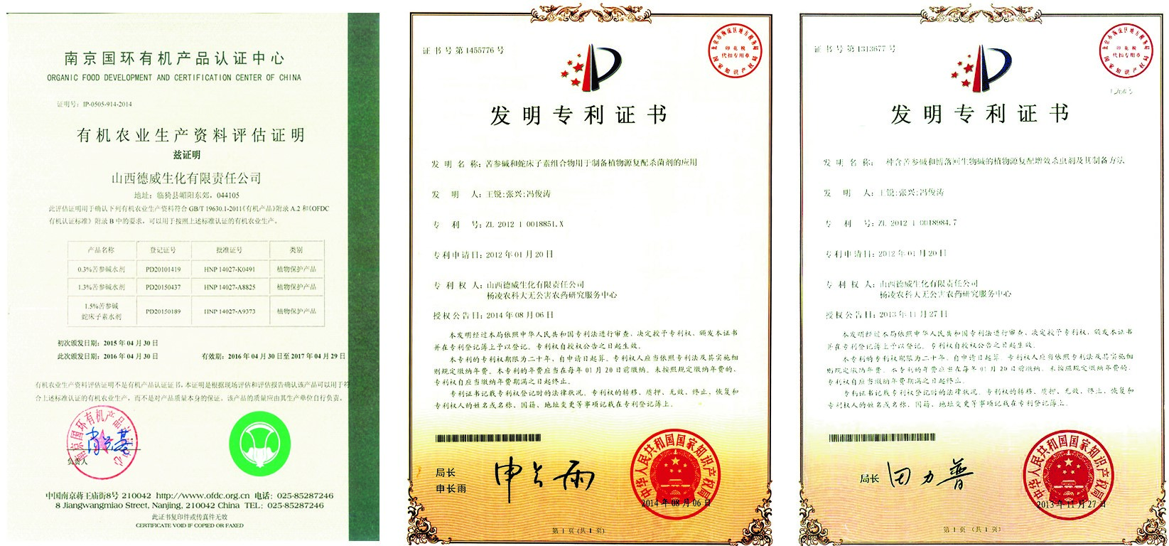 山西德威本草生物科技有限公司是山西省高新技術(shù)企業(yè),公司有完善的研發(fā)實(shí)驗(yàn)檢測(cè)設(shè)備,向國(guó)家知識(shí)產(chǎn)權(quán)局申報(bào)了5項(xiàng)發(fā)明技術(shù)專(zhuān)利,形成了具有自我知識(shí)產(chǎn)權(quán)的四大產(chǎn)品體系,躋身我國(guó)植物源農(nóng)藥先進(jìn)行列。