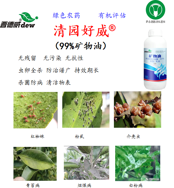 ②一藥多治。礦物油對多種病蟲害都有較好的控制效果。對體型較大的害蟲及土傳病害不具任何防效。