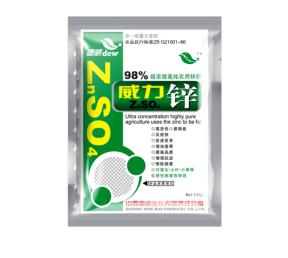 鋅肥在水稻、玉米、小麥、棉花、油菜、果樹、蔬菜、大豆、花生、馬鈴薯、煙草等作物上使用,可提高產(chǎn)量10-30%,并顯著提高和改善產(chǎn)品品質(zhì)。